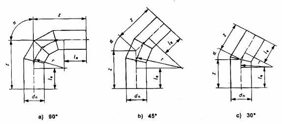 Đối với ba chạc được gia công từ các đoạn ống, các qui tắc suy giảm sau đây được sử dụng để tính toán cho PN: