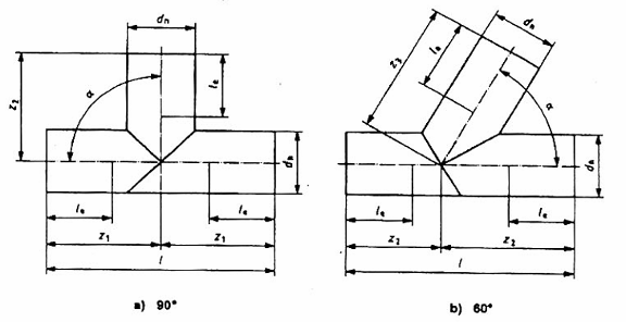 z1, z2, z3 chiều dài danh nghĩa của phụ tùng nhánh so với trục