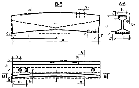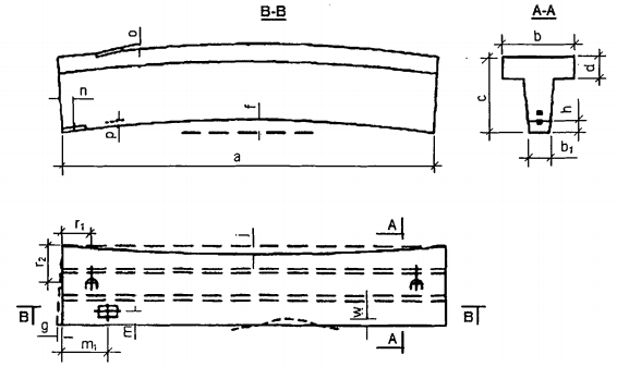 Độ vồng (f) của các cấu kiện dầm chữ T, chữ TT, của dầm tường lửng, dầm chữ I, dầm hộp, tấm tường sườn, tấm tường cách nhiệt – cách âm, xà gồ chữ T, xà gồ hình thang, tấm sàn rỗng có lõi xốp và tấm sàn đặc phụ thuộc chiều dài cấu kiện sẽ được đo và so sánh với giá trị độ vồng thiết kế, với mức sai lệch cho phép do thiết kế quy định. Độ vồng được đo và ghi lại ở thời gian thích hợp ngay sau khi tiến hành truyền ứng lực trước nhưng không quá 72 h kể từ sau khi truyền ứng lực trước.